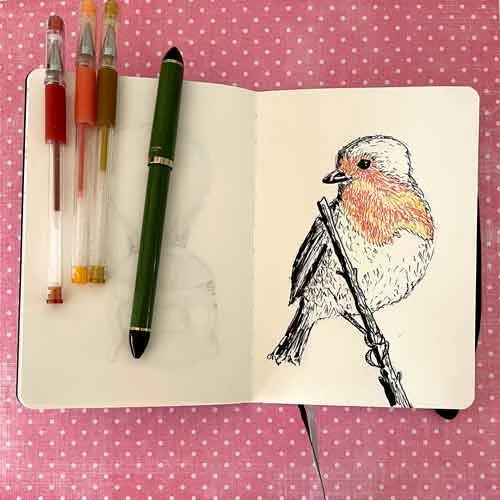 Remember that ink not only comes in pens but is also available bottled. If you want to stick to the classic traditional black, you can create a wonderful collection of black and white drawings that include a bit of tone courtesy of the ink.
